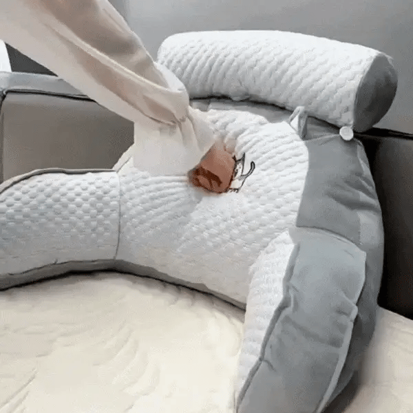 BackWell™ har et strømlinjeformet design som gir full støtte uten å ta opp for mye plass. Når den ikke er i bruk, kan den enkelt lagres eller plasseres mot sengegavlen. Mange kunder opplever at den blir deres favorittfølge på soverommet.